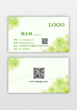 浅绿元素清新创意简约个人公司企业名片卡片模版