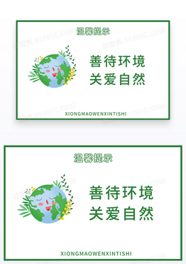 绿色小清新简约边框保护环境温馨提示卡