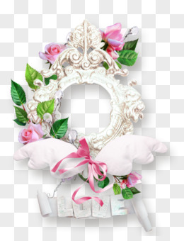简约浅绿浅粉色植物花朵蕾丝边框元素