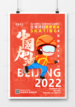 红色简约速度滑冰为中国加油冬奥会系列海报