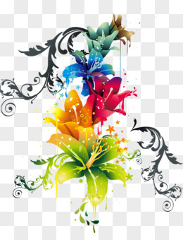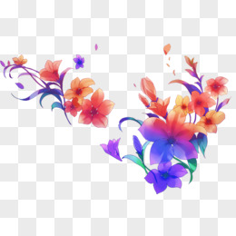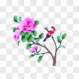 垂丝海棠蜜蜂手绘花朵多彩手捧花免抠元素