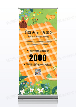 简约草坪户外绿色小清新春天花语录促销活动展架易拉宝春季春天展架易拉宝