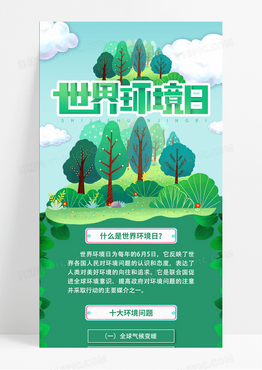 绿色卡通花草树木简约插画世界环境日手机ui长图