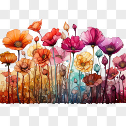 插画五彩花丛免抠素材