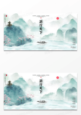 水墨游行天下冬季旅游挑战划船水墨古风户外展板
