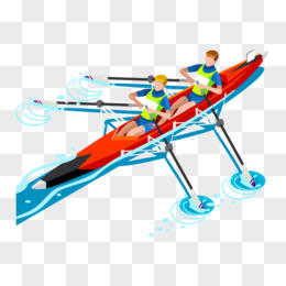 手绘卡通水上划船多人运动场景素材