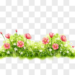 春季草地花丛和远山风景免抠元素