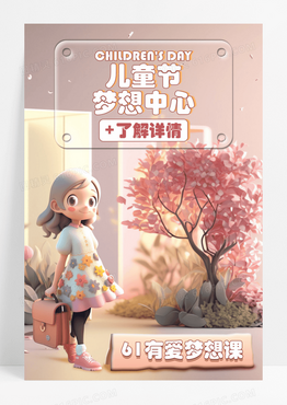 AI插画黏土风六一儿童节坐在花丛中微笑的可爱女孩培训班海报