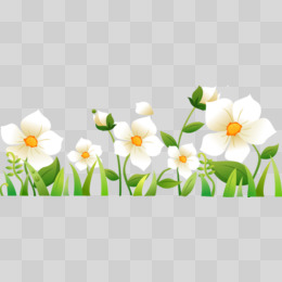 手绘卡通小清新花丛花朵植物装饰免抠素材