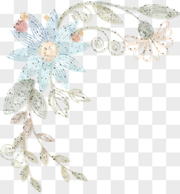 简约浅蓝色植物花朵蕾丝边框元素