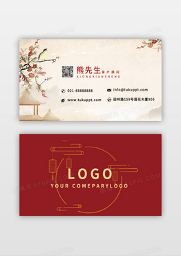 古风水墨花朵庭院名片