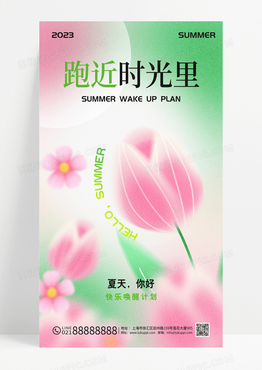 夏天你好summer花朵花瓣微立体插画风手机宣传海报