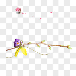 手绘粉色樱花花枝飘落花瓣免抠元素