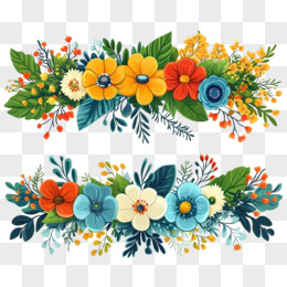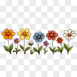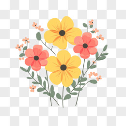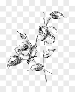 一组手绘卡通花卉局部晕染线稿免抠元素