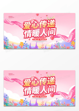粉色可爱卡通爱心传递公益宣传展板公益广告