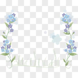 手绘卡通精美的蓝色植物花卉边框