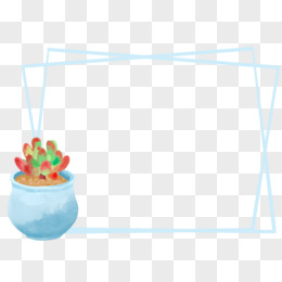 蓝色手绘多肉植物边框元素