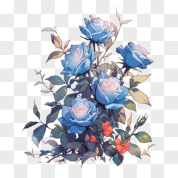 手绘免抠蓝色花朵元素