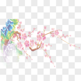 黄色手绘花朵树枝清新