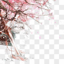 粉色唯美水墨桃花树古风元素