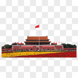 工笔淡彩画风精致汉服金色发簪白色衣裙女子立于白色和红色牡丹花海中央闭目微笑闻花香免抠元素