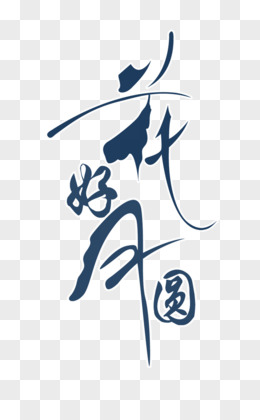 手绘花好月圆艺术字设计