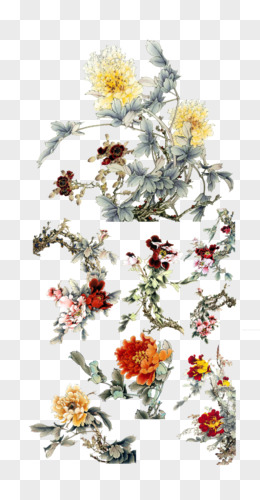 一组手绘国潮风花卉植物套图免抠元素