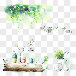 红色剪纸鹦鹉和芙蓉花免抠元素