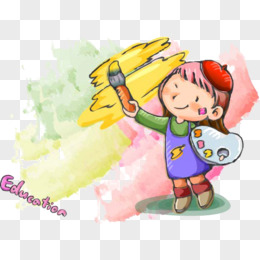 手绘卡通在涂鸦画画的女孩插画免抠元素