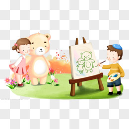 手绘卡通男孩女孩画画猜成语免抠元素