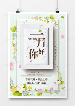 清新风二月你好海报