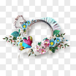 手绘植物五彩花卉森系叶子花环装饰边框素材