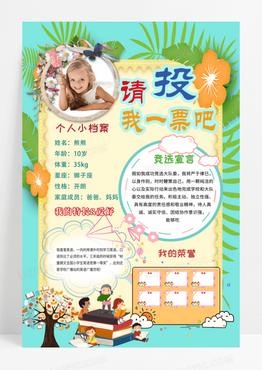 彩色水彩植物花环背景请投我一票大队委员竞选海报