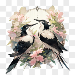 喜鹊浪漫花环元素