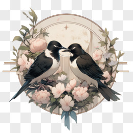 喜鹊亲吻浪漫花环元素