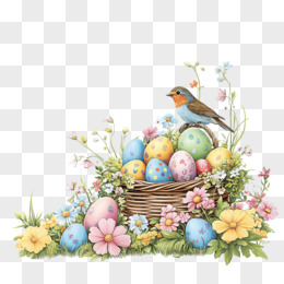 插画复活节彩蛋鲜花免抠元素