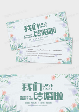 绿色简约小清新花卉结婚婚庆婚礼邀请函请柬贺卡