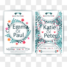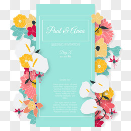 卡通花卉与鸟婚礼邀请卡矢量素材