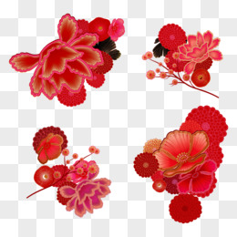 国潮红色花朵免抠装饰矢量元素
