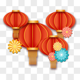 剪纸风灯笼花卉免抠素材