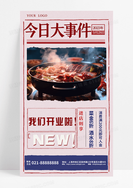 餐饮美食怀旧报纸风大事件餐饮开业海报手机宣传海报