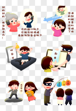 一组卡通防电信诈骗宣传元素套图合集免抠元素