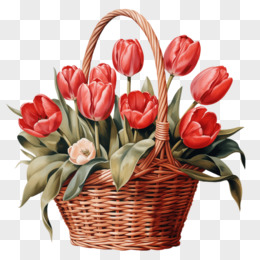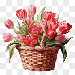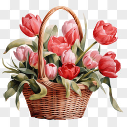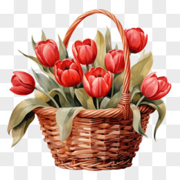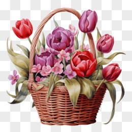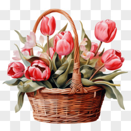 手绘郁金香花篮免抠元素