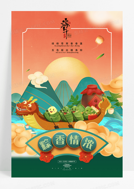 端午节插画赛龙舟划龙舟粽子端午节海报