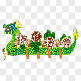 端午节传统活动赛龙舟绿色渐变剪影免抠元素
