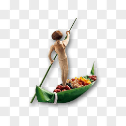 卡通3D船夫划木舟免抠元素