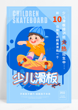 大气少儿滑板培训班少儿轮滑轮滑培训海报清新少儿滑板海报