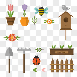 垂丝海棠蜜蜂手绘花朵多彩手捧花免抠元素