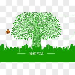 卡通风环保创意标志绿色剪影地球和手免抠元素