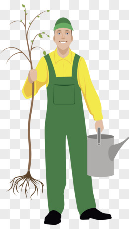 卡通植树人员矢量图